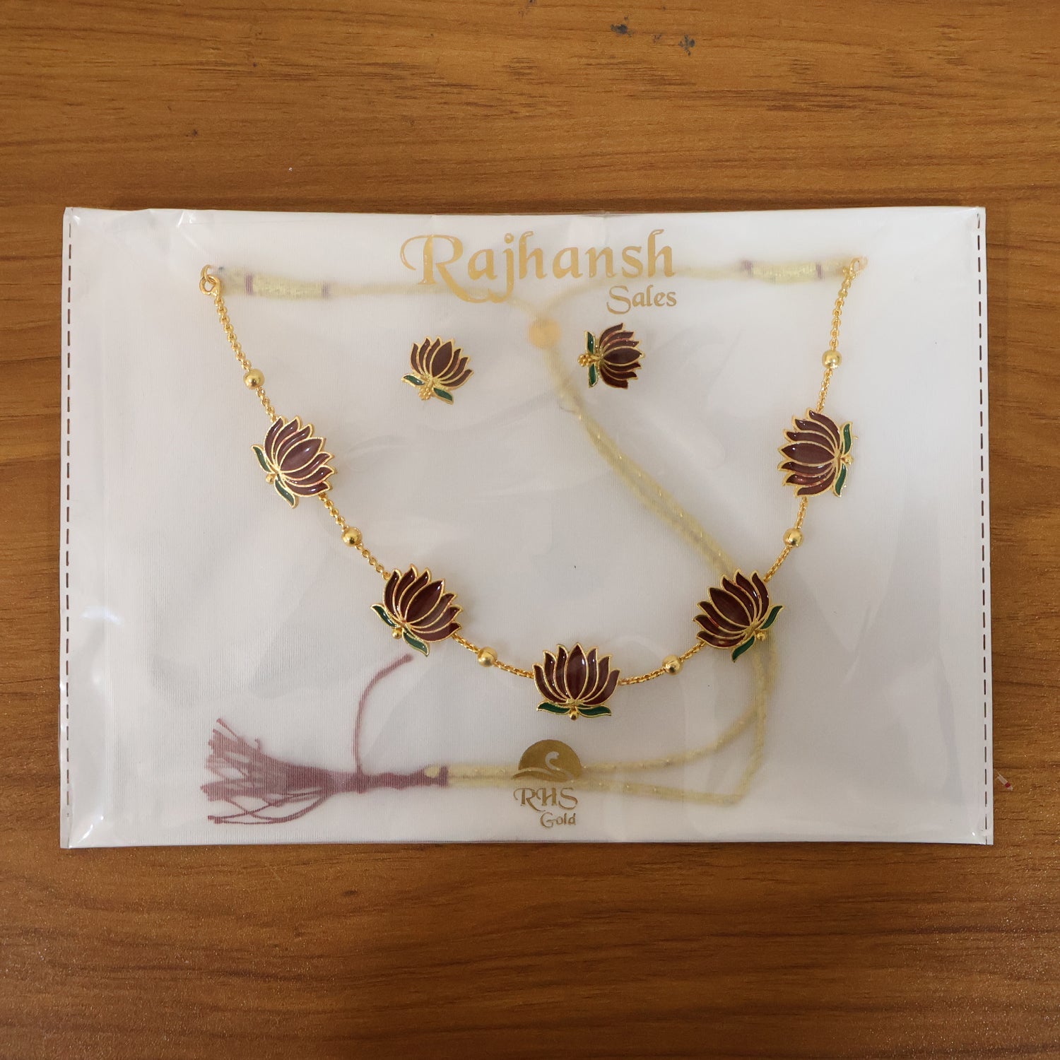 Traditional Lotus Design Necklace with Stud Earrings Set (1 Set)