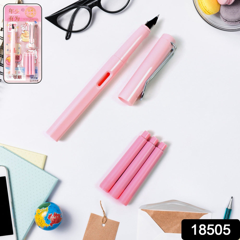 Fountain Blue Pen With 3 Refills For Students, For School Gift For Kids, Birthday Return Gift, Pen For Office, School Stationery Items - Stationery Kit (1 Set)