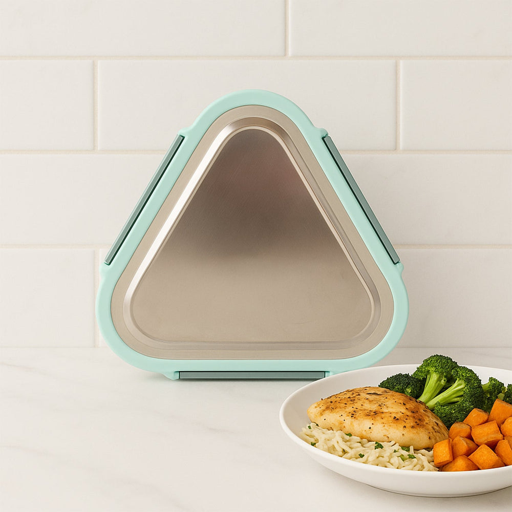 Ganesh Trinity 2-Piece Stainless Steel Triangle Lunch Box Set – Compact Leakproof Tiffin with Unique Shape, Secure Clip Lock, and Modern Design for Office, School & Travel Use