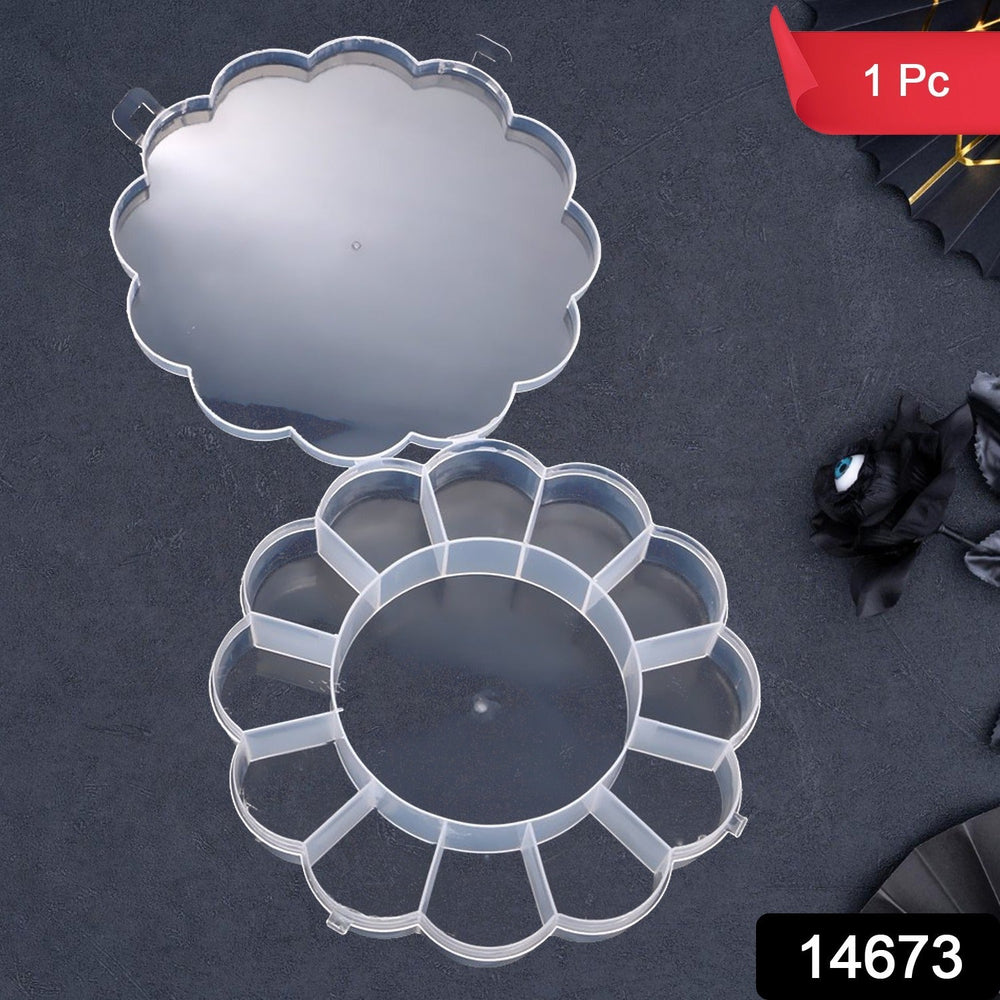 Round Compartment Plastic Storage Box Organizer with Multi-Compartment Design | Small Jewelry, Beads, Craft Parts & Trinkets Container – 1 Pc