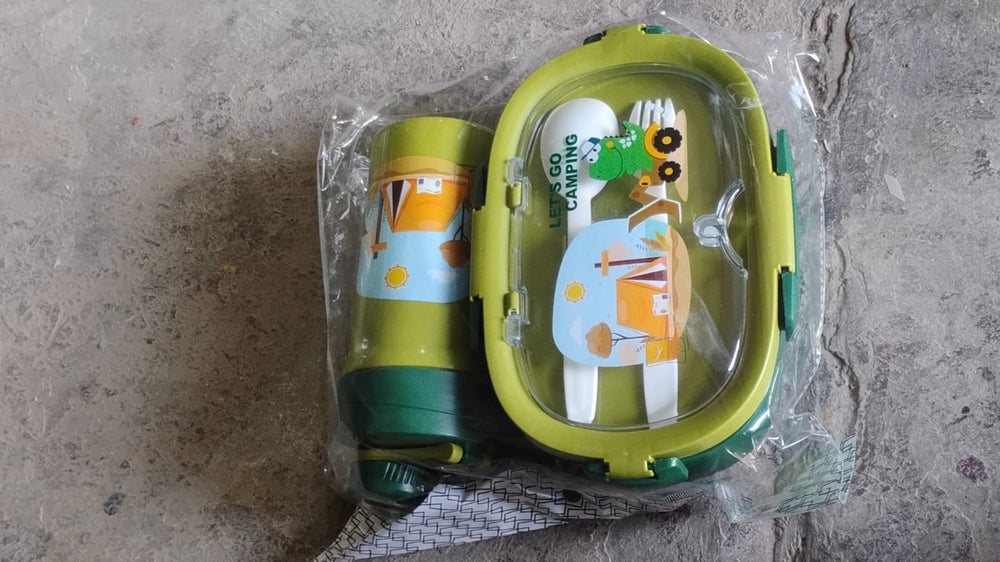 Plastic Lunch Box Leak Proof 3 Compartment Lunch Box with Bottle Reusable Microwave Freezer Safe Food Containers with Spoon and Fork for Adults and Kids (1 Set)