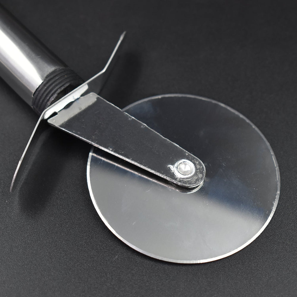 Stainless Steel Pizza Cutter is perfect for slicing your favorite pizzas, flatbreads, and dough. Durable materials resist tarnish, rust, scratching, and residue while maintaining blade sharpness. Safety guard and easy grip contoured handle allow for safe, easy rolling. Dishwasher safe.